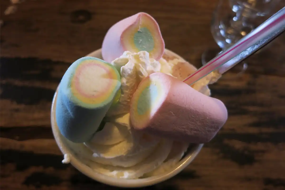 The skiing in Morillon is also ideal for families. The Marvel is a long scenic green run through the forest and is enjoyable for experienced skiers as well as beginners. There is also plenty of blue cruising in this part of the Grand Massif. Our favourite lunch stops are the Chalet D’Clair and Igloo mountain restaurants at the top of Morillon, which both offer extensive menus and where the food is always delicious. The Chantilly topped hot chocolates at Chalet D’Clair have always been good but this year the restaurant surpassed themselves using jumbo multi-coloured marshmallows!