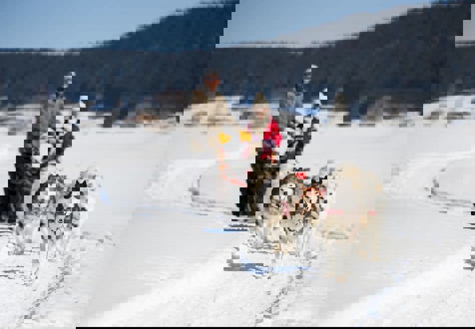 The dogs will take you through the snow-bound scenery of the Upper Giffre Valley.