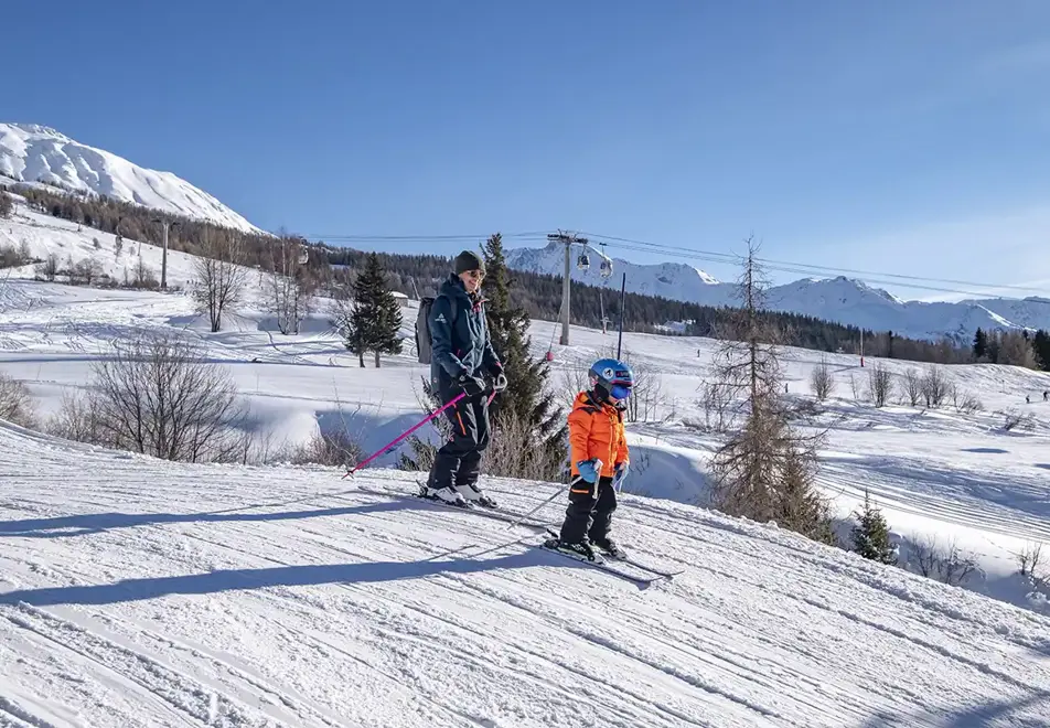Both resorts have good nursery slopes higher up on the tree-line accessed by a chairlift. Cabri or Flocon are two protected areas with a small ski tow in the upper area of Peisey-Vallandry. The Cabri area is accessible from the Peisey chairlift (61) at Plan Peisey, and the Flocon slopes can be reached via the Vallandry chairlift (74) at Vallandry. The Pre Jeannot dedicated children’s snow area is located at Plan Peisey. Complete beginners start at the bottom and then move up to a dedicated area at the top of the chairlift. Although it’s graded blue The Forêt run down to Vallandry is gentle enough to be a green! There’s is one green run in the Peisey/Les Arcs domain - but it’s 7km long, and in the forest!