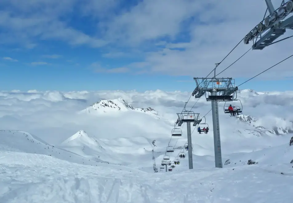 Paradiski is linked by the Vanoise Express double-decker cable car (since 2003) which can transport nearly 200 people across the valley of Peisey-Nacroix in less than 4 minutes. It is the largest cable car in the world currently. Fun facts: the cabin is 380m from the ground at its highest point and travels at 45km/hour. It's quite a spectacular journey with stunning views.