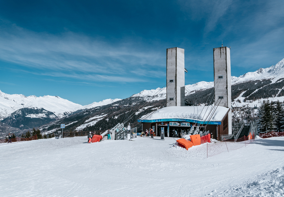 Paradiski is linked by the Vanoise Express double-decker cable car (since 2003) which can transport nearly 200 people across the valley of Peisey-Nacroix in less than 4 minutes. It is the largest cable car in the world currently. Fun facts: the cabin is 380m from the ground at its highest point and travels at 45km/hour. Its quite a spectacular journey with stunning views.